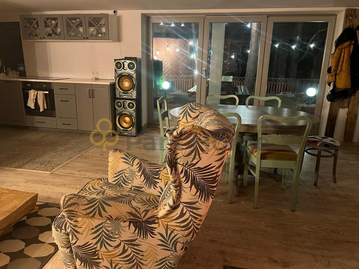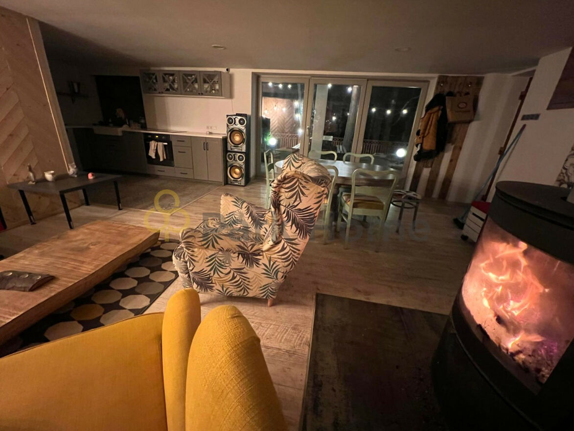 * łazienki z prysznicem, pokoju dziennego z kominkiem i z aneksem kuchennym oraz bardzo dużego tarasu z widokiem na jezioro --> na parterze